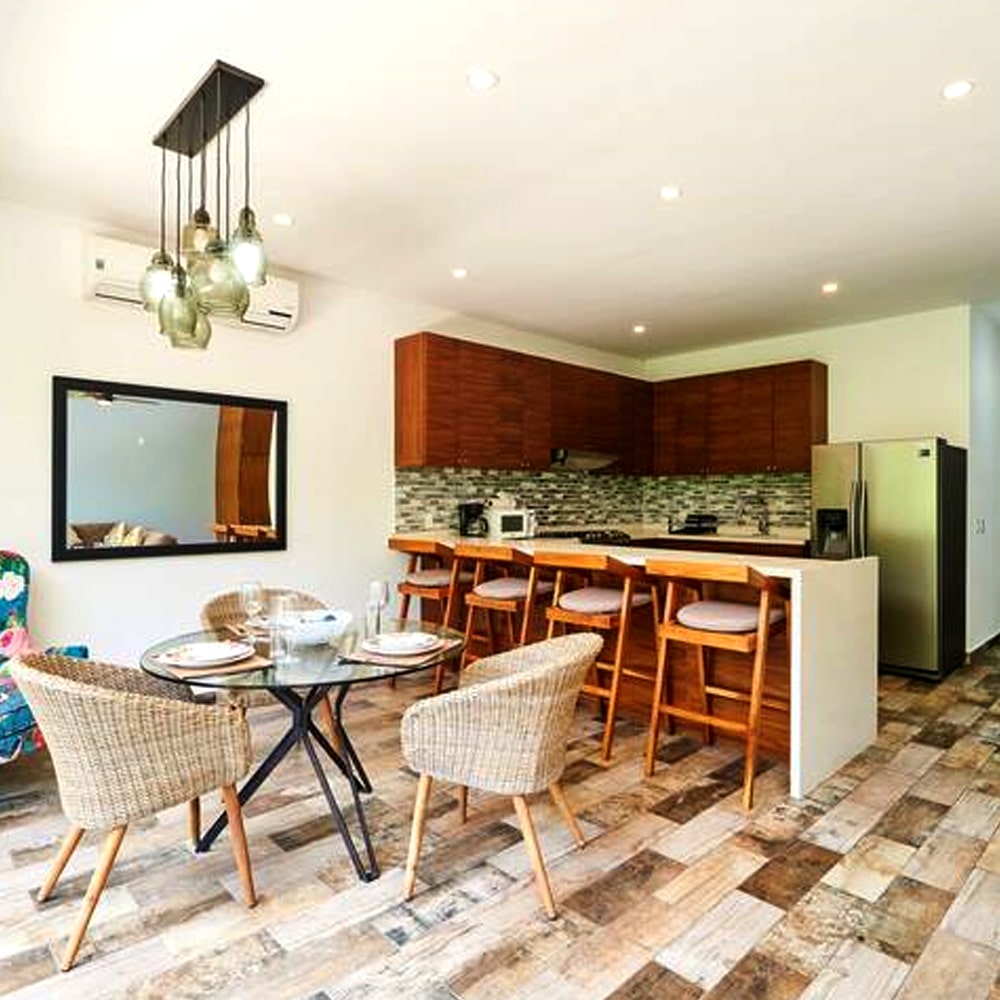 The living room, dining area, and kitchen are equipped with everything you need to enjoy your stay at Villa Magdalena. We will provide you with kitchen utensils, a refrigerator, and a television so you can enjoy delicious meals and entertainment in a cozy and comfortable environment.